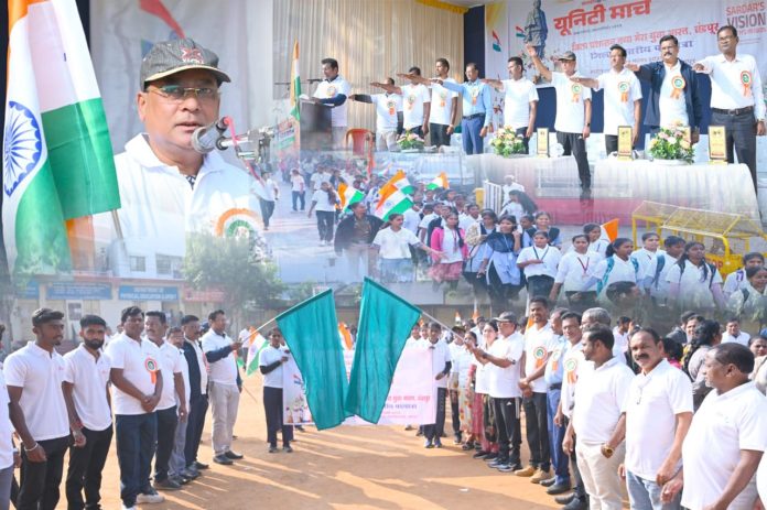 चंद्रपूर(दि.23नोव्हेंबर):-सरदार पटेल महाविद्यालयातील राष्ट्रीय सेवा योजना विभागासह मेरा युवा भारत, युवा कार्यकम व खेळ मंत्रालय, भारत सरकार यांच्या संयुक्त विद्यमाने भारताचे लोहपुरुष आणि राष्ट्रीय एकात्मतेचे शिल्पकार सरदार वल्लभभाई पटेल यांच्या १५० व्या जयंती निमित्त ‘युनिटी मार्च’ पदयात्रा मोठ्या थाटात पार पडली.