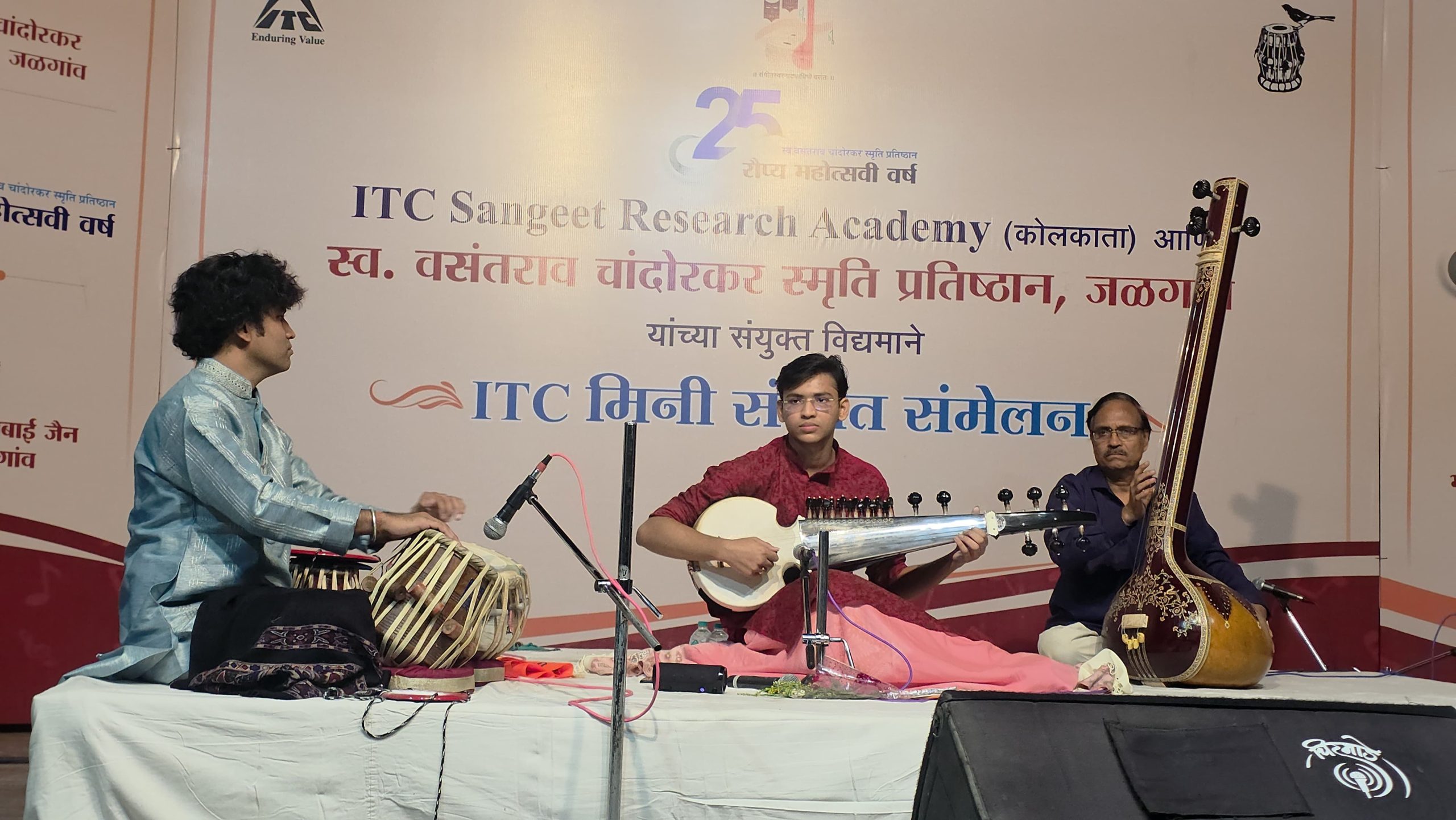 जळगाव(दि.1नोव्हेंबर):-स्व. वसंतराव चांदोरकर स्मृती प्रतिष्ठानच्या रौप्य महोत्सवी वर्षा निमित्ताने आयटीसी संगीत रिसर्च अकादमीच्या संयुक्त विद्यमाने दोन दिवसीय संगीत महोत्सवाचे आयोजन भैय्यासाहेब गंधे सभागृहात करण्यात आले आहे. या दोन दिवसात अकादमीचे दोन स्कॉलर व दोन प्रतीथ यश कलावंतांचा सहभाग आहे.