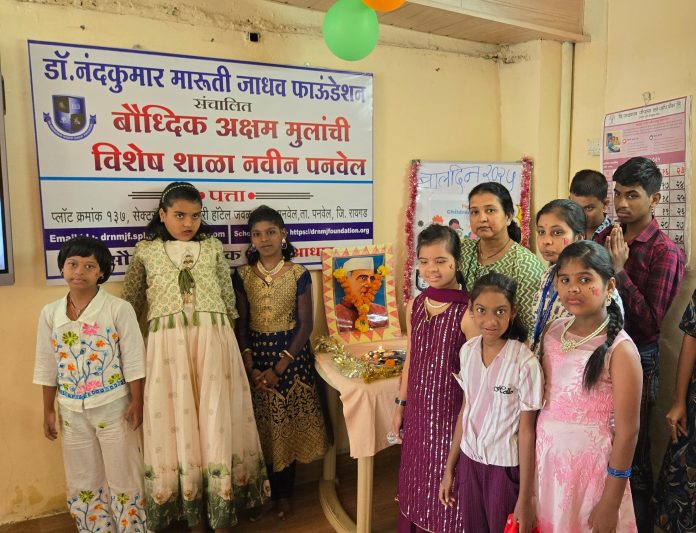 नागपूर(दि.15नोव्हेंबर):- नवीन पनवेल येथील डॉ. नंदकुमार मारुती जाधव फाउंडेशन संचालित बौद्धिक अक्षम मुलांच्या विशेष शाळेत पंडित जवाहरलाल नेहरू यांच्या जयंतीनिमित्त बालदिन उत्साहात साजरा करण्यात आला. विद्यार्थ्यांसाठी शाळेच्या परिसराची आकर्षक सजावट, रांगोळ्या आणि विविध उपक्रमांनी संपूर्ण वातावरण रंगतदार झाले होते.
