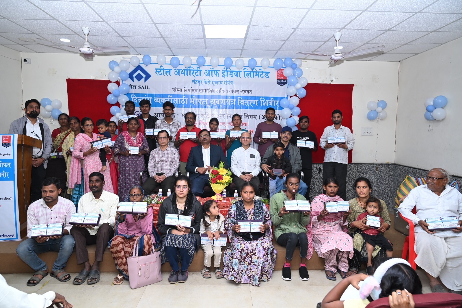 चंद्रपूर(दि.20डिसेंबर):- कॉर्पोरेट सामाजिक जबाबदारीचा एक भाग म्हणून आणि आंतरराष्ट्रीय दिव्यांग दिनानिमित्त, स्टील अथॉरिटी ऑफ इंडिया लिमिटेड (SAIL) च्या युनिट चंद्रपूर फेरो अलॉय प्लांट (CFP) द्वारे चंद्रपूर येथील पत्रकार भवन येथे 50 संच (100 संख्या) च्या विशेष सहाय्यक श्रवणयंत्रांचे वितरण करण्यात आले.