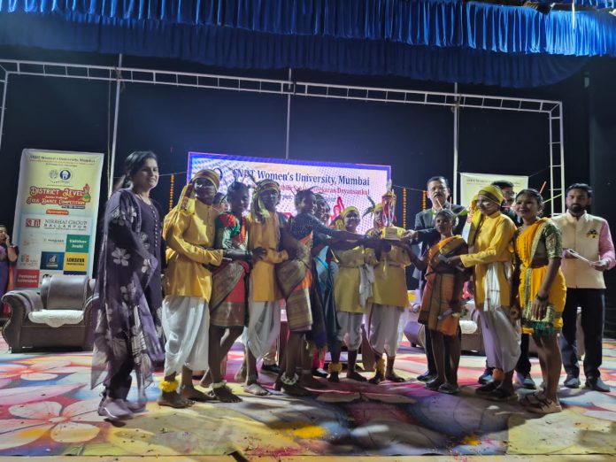 राजुरा(दि.27डिसेंबर):-बल्लारशाह येथील सांस्कृतिक नाट्यगृह येथे दिनांक २३ डिसेंबर रोजी एसएनडिटी महिला विद्यापीठ, मुंबई यांच्या अंतर्गत महर्षी कर्वे महिला सक्षमीकरण ज्ञानसंकुल, बल्लारशाह उपकेंद्र यांच्या वतीने आयोजित जिल्हास्तरीय लोकनृत्य स्पर्धा अत्यंत उत्साहपूर्ण वातावरणात पार पडली. या स्पर्धेत जिल्ह्यातील विविध १६ कनिष्ठ महाविद्यालये व शाळांमधील मुलींच्या चमूंनी सहभाग नोंदवून महाराष्ट्राच्या लोककलेचे समृद्ध दर्शन घडवले. पारंपरिक वेशभूषा, तालबद्ध हालचाली आणि सुसंवादी संगीताच्या जोरावर सादर झालेल्या लोकनृत्यांनी प्रेक्षकांची मने जिंकली.