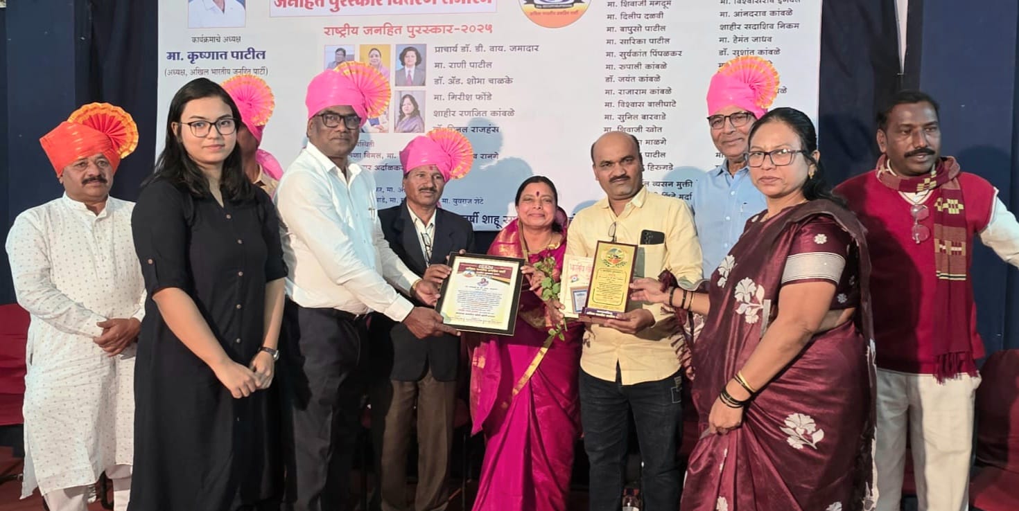 सुप्रिया पाटील, विश्वासराव तरटे, किरण पाटील, ईस्माइल समडोळे, अमित चव्हाण, मारुती माळी, जनार्दन पाखरे, शिवाजी मगदूम, दिलीप दळवी, संतोष सुर्ववंशी, विश्वासराव इंगवले, आंनदराव कांबळे, शाहीर सदाशिव निकम, बापुसो पाटील, सारिका पाटील, सुर्यकांत पिंपळकर, रुपाली कांबळे, डॉ. जयंत कांबळे, राजाराम कांबळे, विश्वास बालीघाटे, सुनिल बारवाडे, हेमंत जाधव, डॉ. सुशांत कांबळे, प्रज्ञा कांबळे, धनंजय पाटील, शिवाजी खोत, प्रा. प्रियांका माळगे, सुखदेव पाटील, कुडंलिक हिरुगडे, सदाशिव कांबळे, रसूल शेख, बाबासाहेब वराळे, वैशाली पाटील, स्मिता कांबळे, सचिन सुतार, अंनंत कुलकर्णी यांना राज्यस्तरीय जनहित पुरस्कार देऊन सन्मानित करण्यात आले.